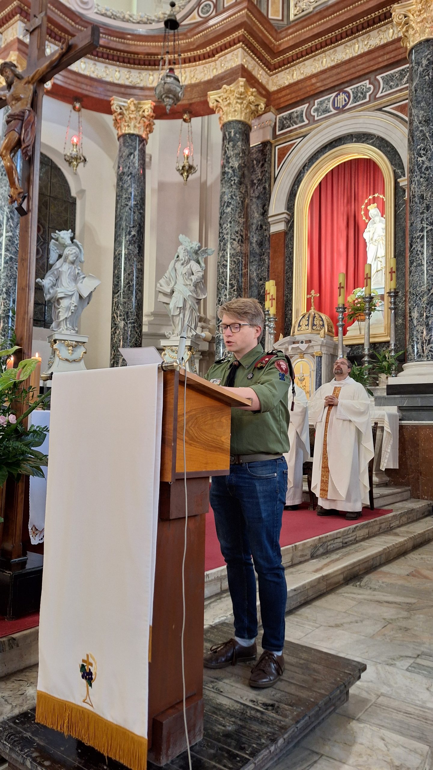 Oprawę liturgiczną i muzyczną mszy św. inaugurującej uroczystości przygotowali Harcerze 710 Drużyny Wędrowniczej ZHP Kedyw im. gen. Stefana „Grota” Roweckiego oraz Skauci Europy spotykający się przy naszej parafii.