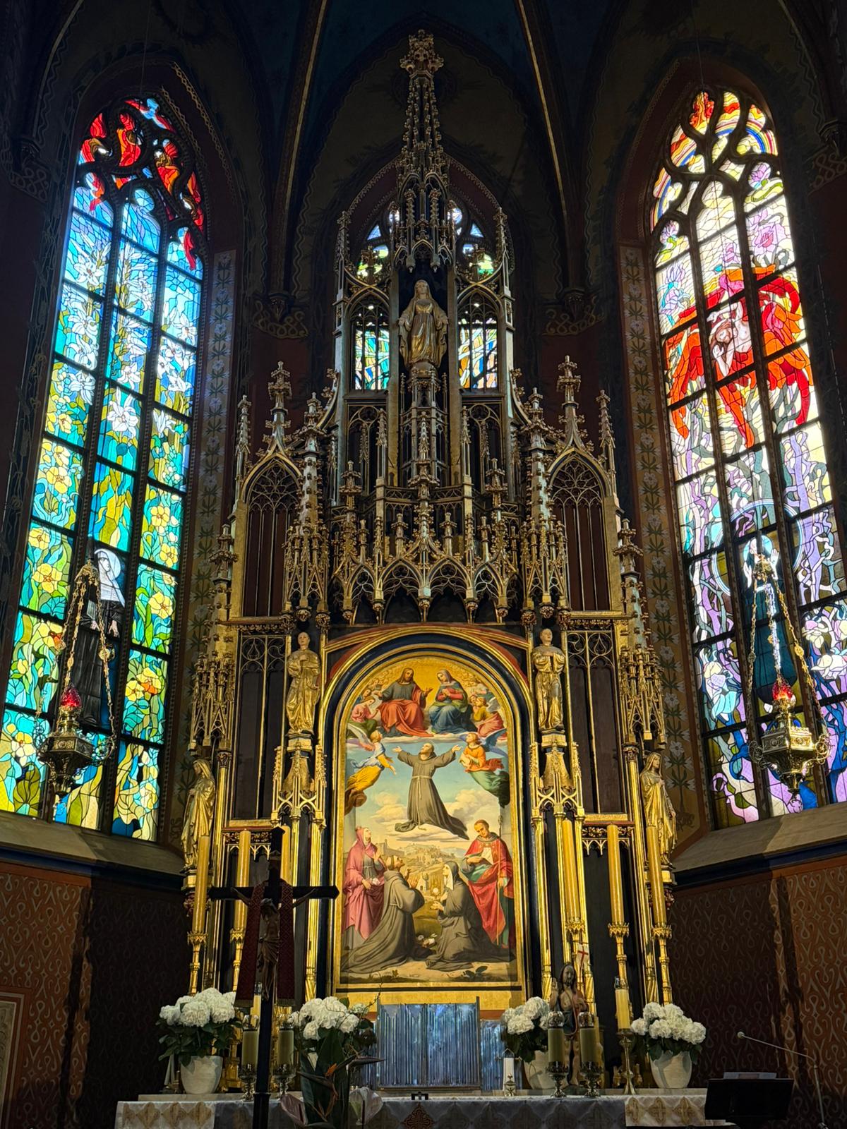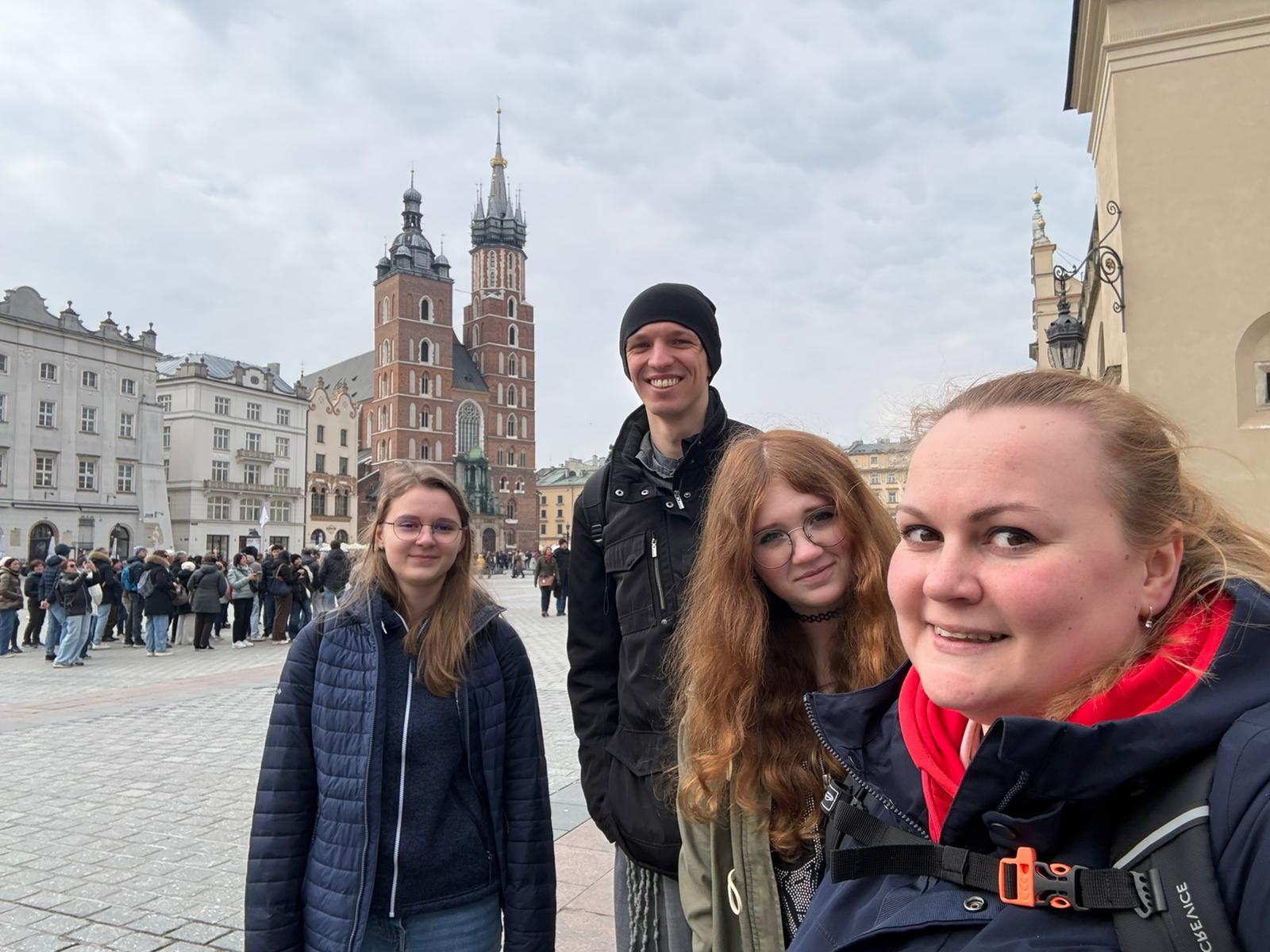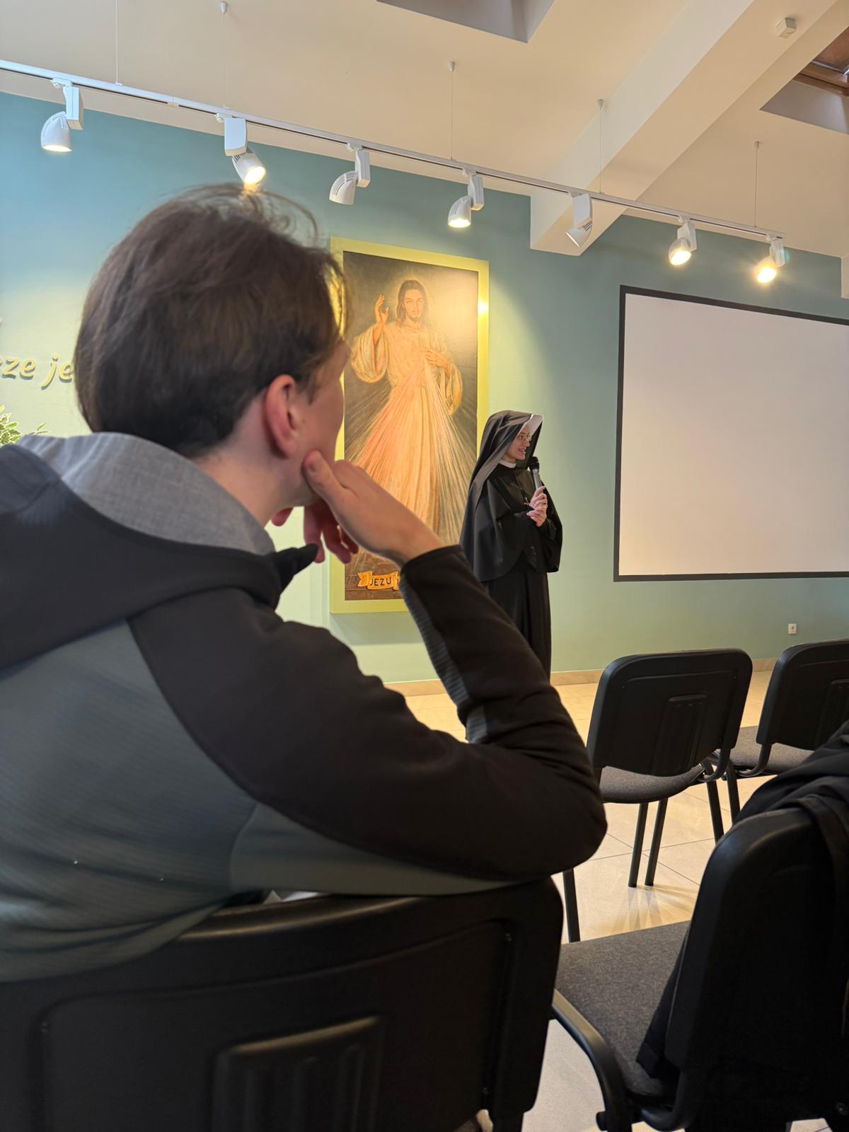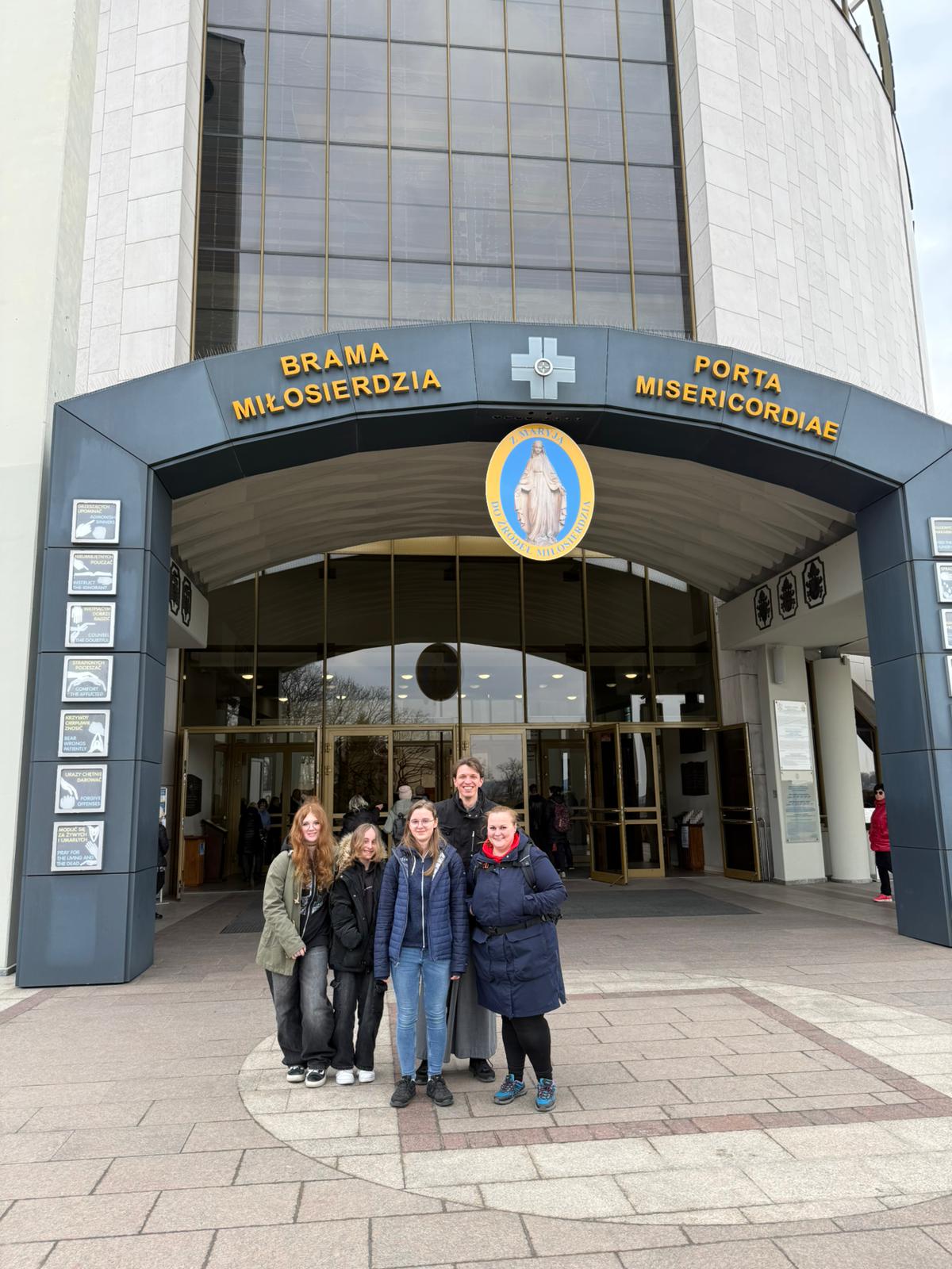 Po drodze odwiedziliśmy Bazylikę św. Franciszka z Asyżu w Krakowie. Tam brat Marek oprowadził nas tzw.: „drogą świętych” i zapoznał ze świętymi, które związane były/są z naszym kościołem (m.in. bł. Aniela Salawa, św. Maksymilian Maria Kolbe, św. Jan Paweł II, bł. Zbigniew i Michał oraz W Łagiewnikach uczestniczyliśmy we Mszy Świętej, wysłuchaliśmy konferencji siostry ze Zgromadzenie Sióstr Matki Bożej Miłosierdzia i wspólnie odmówiliśmy Koronkę do Bożego Miłosierdzia.