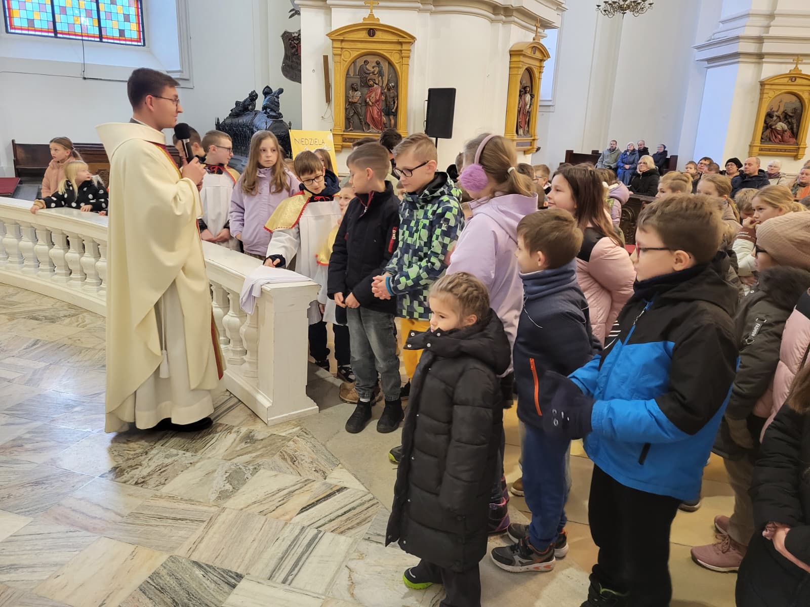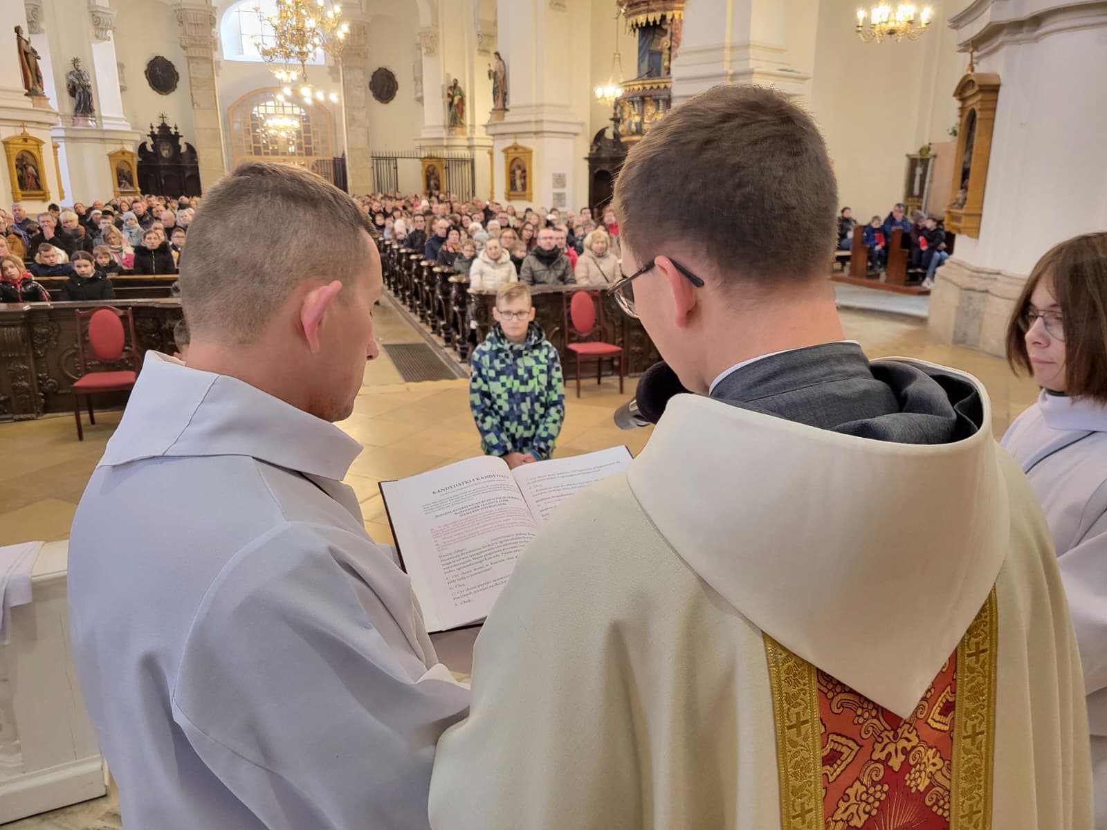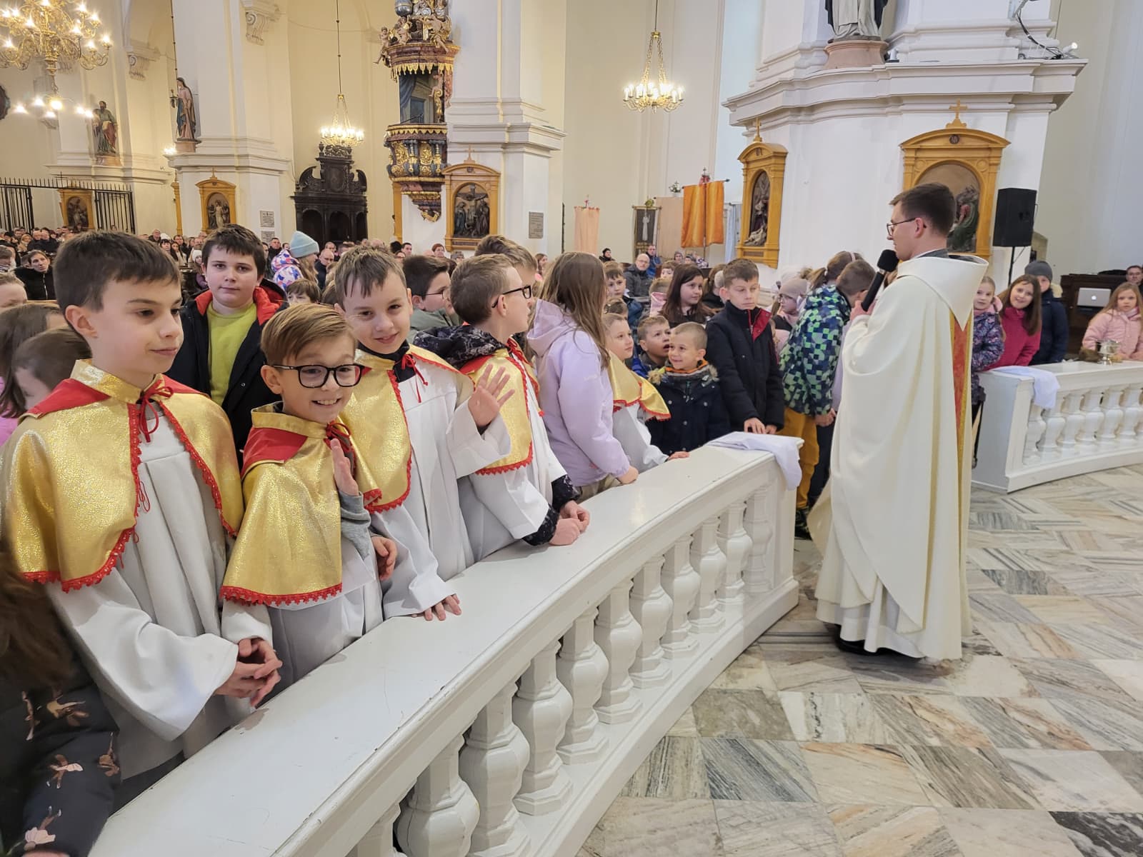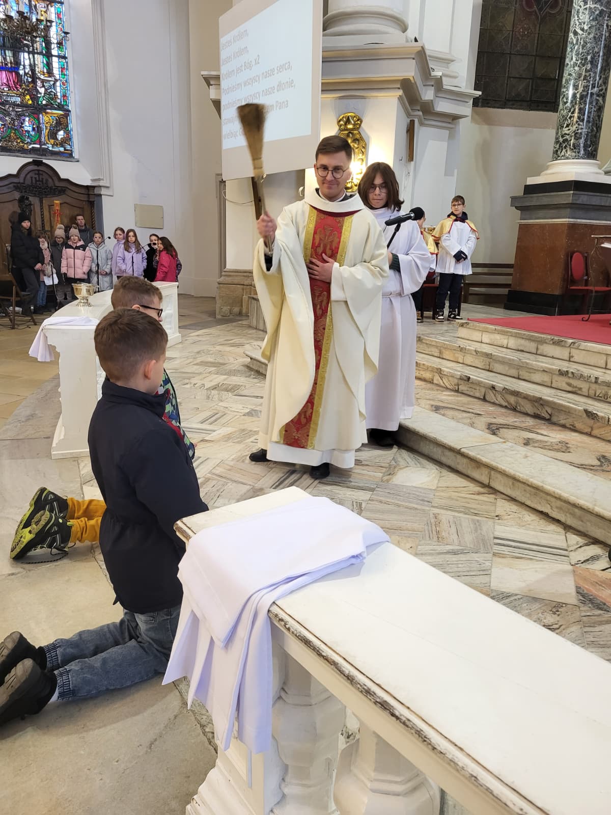 W naszej parafii podczas Mszy Świętej o 11:30 dwóch chłopców zostało przyjętych do grona kandydatów na ministrantów. Przez najbliższy rok będą się przygotowywali, obserwowali i uczyli na czym polega służba ministrantów przy ołtarzu i nie tylko. Nowym kandydatom życzymy wytrwałości i przy okazji zachęcamy innych, aby nie bali się zaangażować w tę piękną służbę.